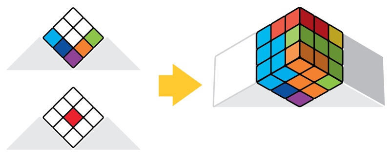 Het bijhorend boekje bevat 80 opdrachten, opgedeeld in 5 niveau’s, van starter tot wizard. De eenvoudige opdrachten tonen de kleurenpatronen die op voor- en achterzijde van de kubus tevoorschijn moeten komen indien je de puzzel correct hebt opgelost. Hoe hoger het niveau, hoe minder vakjes van de uiteindelijke oplossing je te zien krijgt. Op de 2 hoogste niveau’s zie je bovendien enkel de voorzijde.