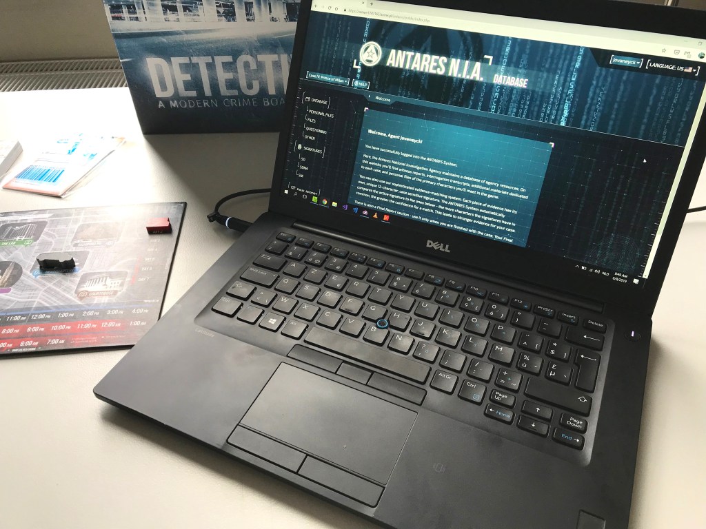 Als groep spendeer je ongeveer de helft van je tijd aan het onderzoeken van de spoorkaarten en het onderling discussiëren over wat de nieuwe informatie betekent & wat de volgende stap wordt. De andere helft van de tijd spendeer je op de Anatares website: je geeft DNA-sporen in, matcht vingerafdrukken of leest uitgebreide getuigenverslagen. De website doet wat het moet doen en draagt enorm bij tot de inleving in jouw rol als detective. De flitsende cyber-effecten komen recht uit een aflevering van CSI. De Antares website is een knap voorbeeld van hoe het toevoegen van een mobiele applicatie of website de spelervaring enorm rijker kan maken. Zo houdt de website bij welke sporen je allemaal hebt gevonden, iets wat meetelt in je finale eindscore. Of soms krijg je op een meer originele manier een stukje van de puzzel of nieuwe informatie ter beschikking. Meer zeggen zou de verrassing verpesten, maar er zijn enkele leuke twists mogelijk dankzij deze hybride bordspel-website combinatie.