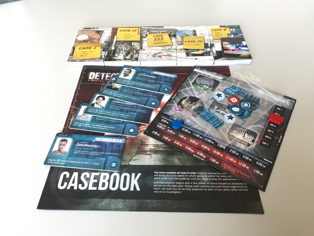 In Detective: A Modern Crime Boardgame spelen 1 tot 5 spelers de hoofdrol in hun eigen moderne misdaadserie. Je onderzoekt als team plaatsen delict, ondervraagt getuigen, verhoort verdachten en probeert zo 5 individuele zaken op te lossen. Alhoewel, al snel blijkt dat deze zaken toch niet zo losstaand blijken te zijn… Hier volgt onze spoiler free recensie.