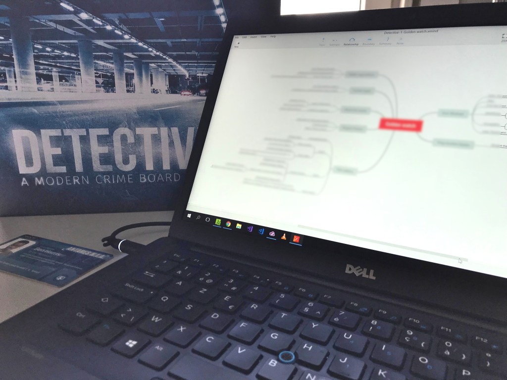 Detective is een enorm thematisch bordspel dat bedoeld is voor een volwassen publiek. Het behandelt onderwerpen zoals diefstal, moord, lichamelijk geweld en kidnapping. Tijdens het spelen waanden we ons vaak echte detectives. We tekenden voor elke zaak diagramma’s om verbanden te leggen tussen al de verzamelde informatie. We voerden DNA-stalen in in de fictieve Antares database om deze te vergelijken met die van onze hoofdverdachte. Detective doet er alles aan om je 5 speelsessies lang als een echte detective te doen voelen. Het verhaal bevat plotse plottwists. Bewijsmateriaal dat in het begin irrelevant leek te zijn, wordt plots enkele zaken verder van levensbelang. De integratie met een interactieve website en de mogelijkheid om bepaalde termen op te zoeken op internet zorgen ervoor dat je écht detectivewerk moet leveren om een zaak tot een goed einde te brengen. Of miserabel te falen, want Detective is moeilijk. Van de 5 zaken losten we enkele met een bijna perfecte score op, wat ons even topdetectives deed voelen. Maar er waren evenzeer zaken waar we er helemaal naast zaten. Naast de losse zaken probeer je gaandeweg ook de meta-plot op te lossen, het overkoepelende verhaal dat de zaken met elkaar verbindt.