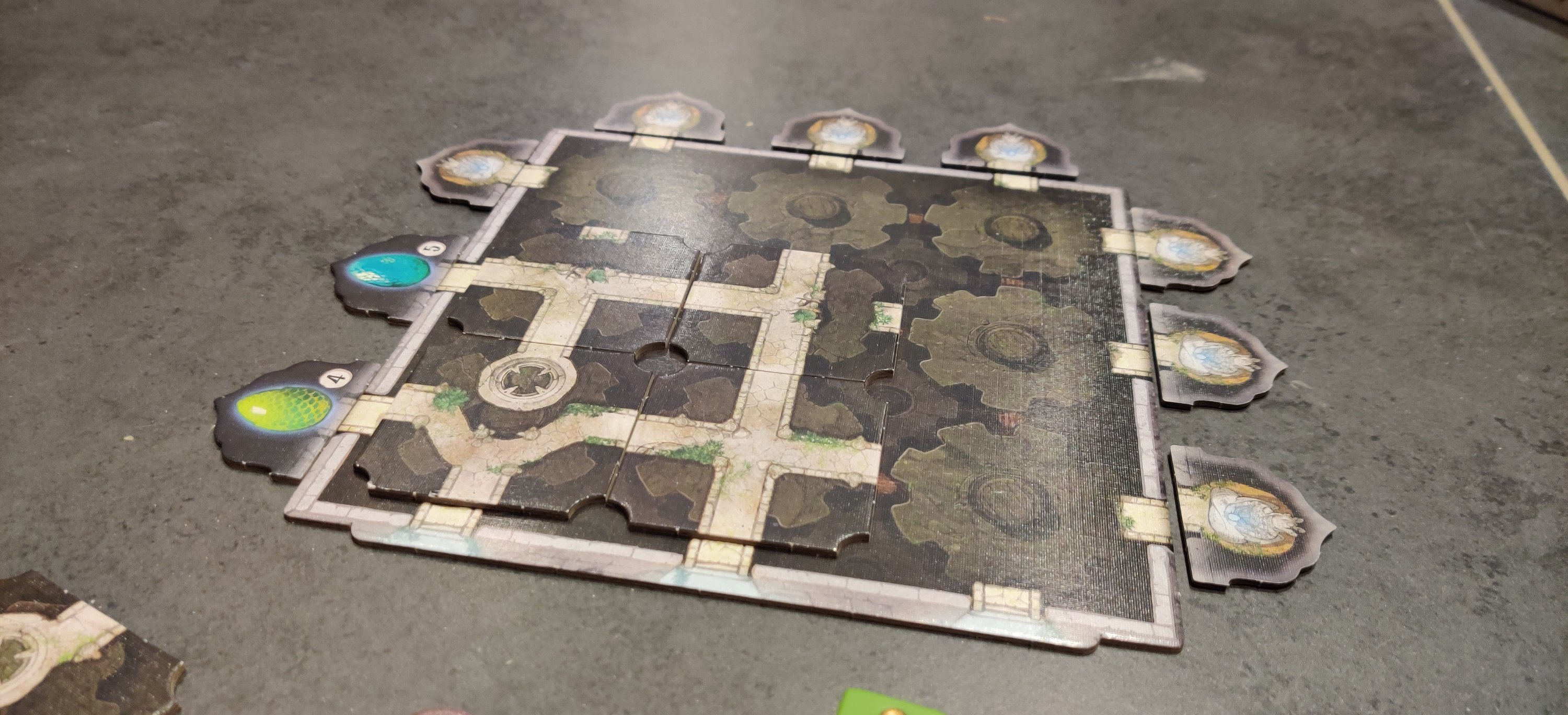 Het persoonlijke bord, de tempel, bevat 9 lege ruimtes, 3 ingangen vooraan en 9 onontdekte, willekeurig face down gelegde, relikwieën rondom. De relikwieën leveren punten op wanneer ze ontdekt worden. Dat kan enkel indien er een ononderbroken pad van een ingang er naartoe loopt. Om beurten wordt er gestreden voor een tegel, voorzien van 1 of meerdere paden, die, indien gewonnen, in de persoonlijke tempel geplaatst moet worden. Een tegel moet steeds grenzen aan een ingang of aan een andere tegel.