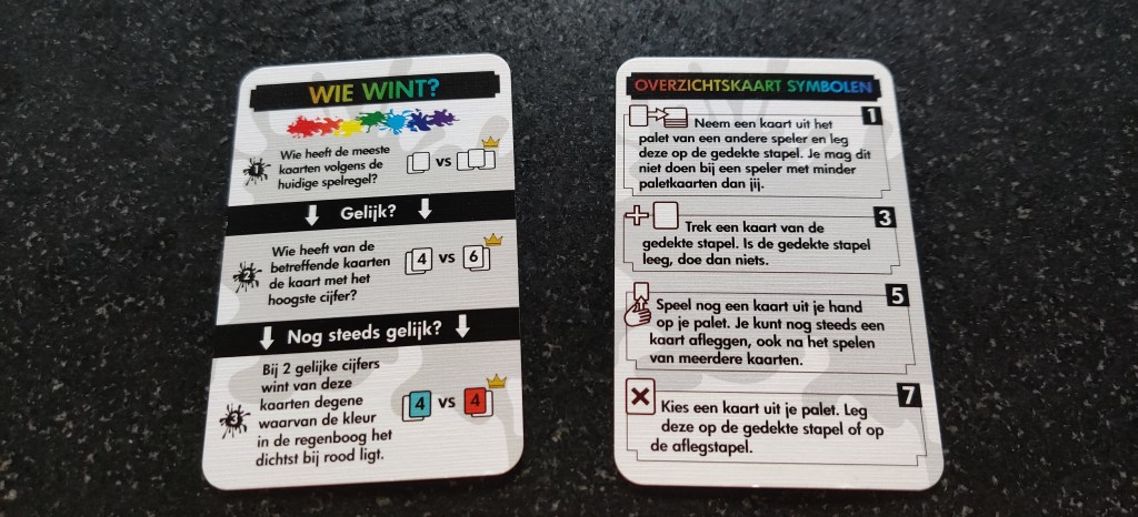 Er is flink wat geluk gemoeid met dit spel, maar de mechanics zijn enorm leuk. Bovendien kan je alsnog een beetje tactisch spelen door af te wegen welke kaart je best speelt, afhankelijk van je andere handkaarten en het palet van elke speler.