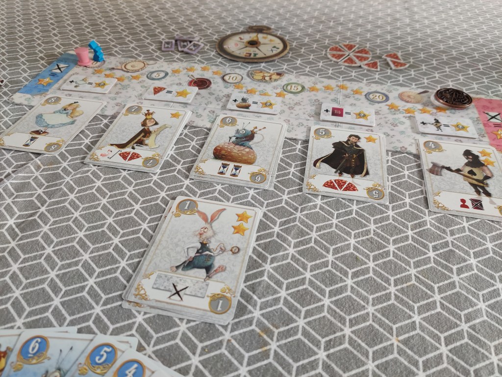 Tea for 2 is een snelle deckbuilder voor 2 die zich afspeelt in de wereld van Alice in Wonderland. Al het spelmateriaal, bord, pionnen, fiches, zakhorlogbordje en kaarten zijn zeer mooi verweven in het thema. Maar is het naast mooi voor het oog, ook een leuk spel?