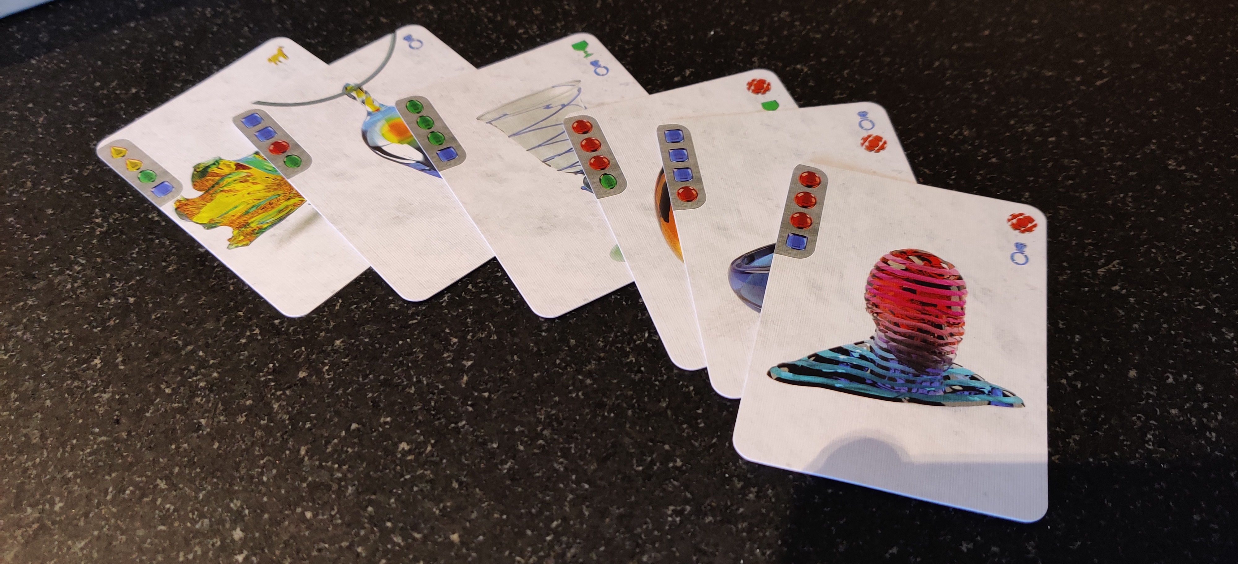 Niets mis met abstracte spellen, maar dan hadden we graag wat meer diepgang in de plaats gezien. In feite doe je niets anders dan scherven nemen, kopen, ruilen of verkopen om creatiekaarten af te werken die je Lira opleveren. Aan de hand van voordeelkaarten je bepaalde acties net iets voordeliger uitvoeren. Toch net iets te weinig tactische mogelijkheden voor ons.