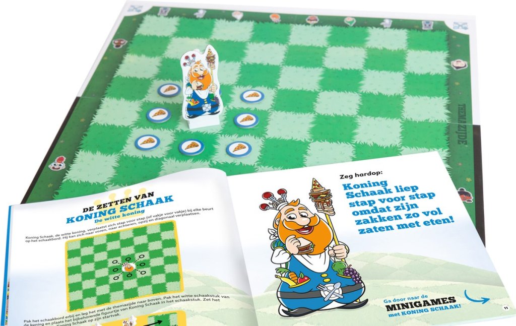 Tot slot vind je enkele minigames. Elk minigame toont een situatieschets van het spelbord. Hierop staat het personage en enkele tokens afgebeeld. Het doel van elk minigame is anders en wordt op het eind beschreven. Initieel gaan ze over het pakken van tokens. Naar het einde toe gaat het meer over het slaan van andere personages. Door alle verhalen te lezen en de 30 minigames te spelen leert je kind spelenderwijs schaken.