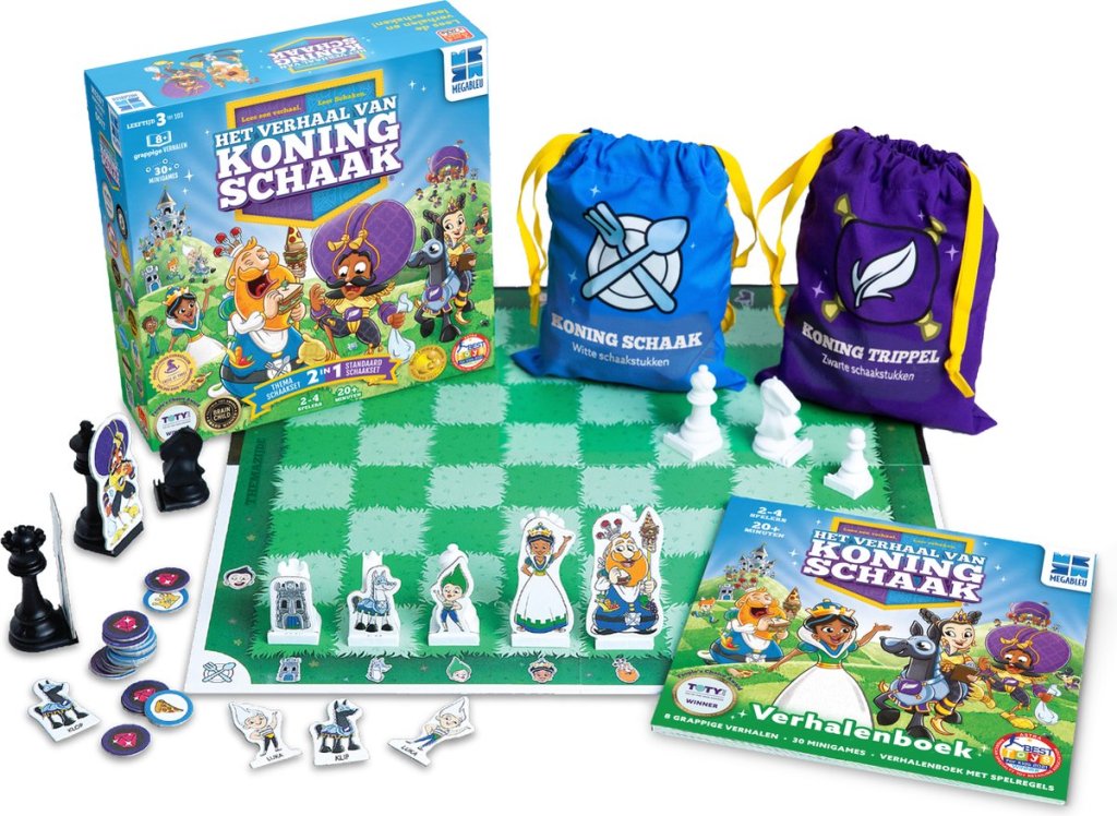 Met Het verhaal van Koning Schaak heeft Megableu een topper te pakken. Het heeft een dubbel doelpubliek: kinderen en volwassenen. Het verhaal met de personages en de minigames is geniaal. De illustraties zijn heel leuk en het materiaal is top. Dit spel heeft terecht zoveel prijzen gewonnen!